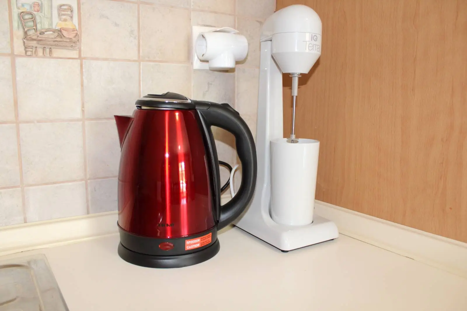 The separate bedroom includes a large double bed and a built-in four-door wardrobe, providing plenty of storage space. For your convenience, there is also an iron and ironing board.